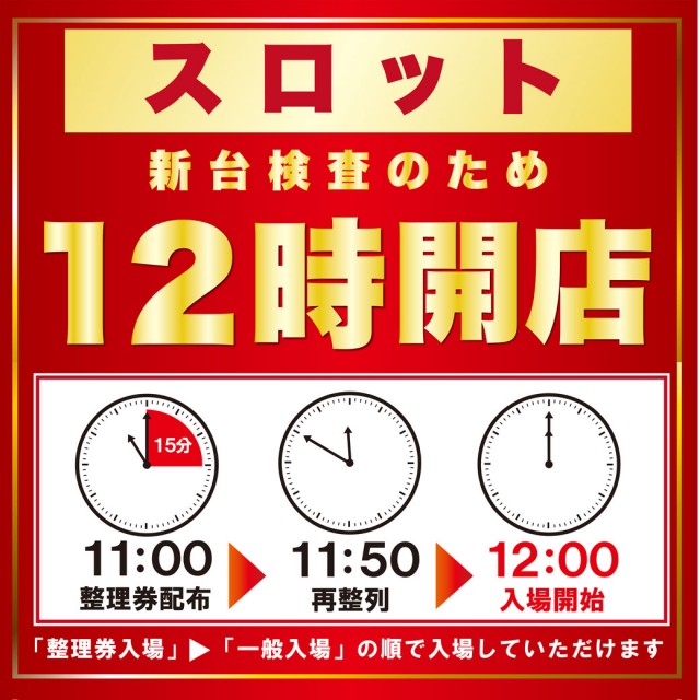 パチンコ:8時より入場整理券配布 / スロット:抽選入場(777CON-PASS) |