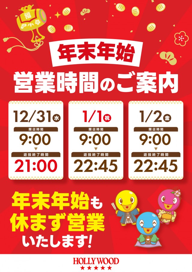本日1月10日(土) ハイパーハリウッドからのお知らせです