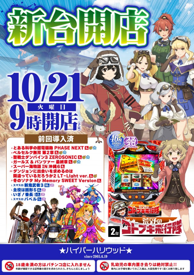年中無休(ただし新台入替前日はお休みとさせて頂く場合がございます。詳しくはカレンダーをご覧下さい。) |