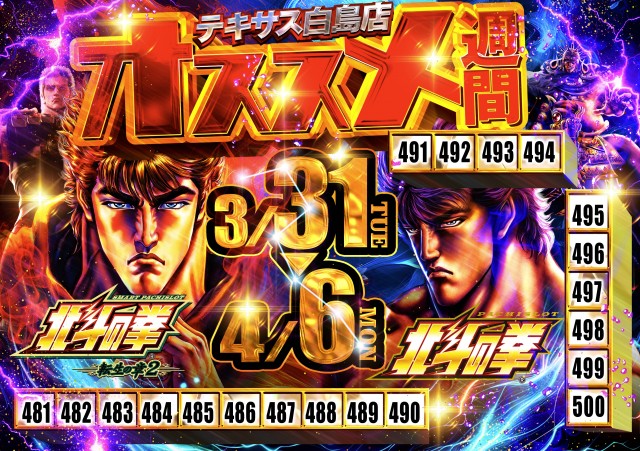 🌈4月も白島テキサスへ🌈本日25日🌈全館9時オープン🌈