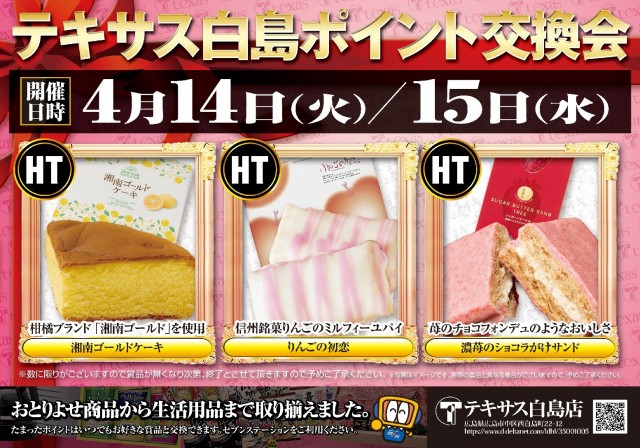 🌈4月も白島テキサスへ🌈明日14日🌈全館9時オープン🌈