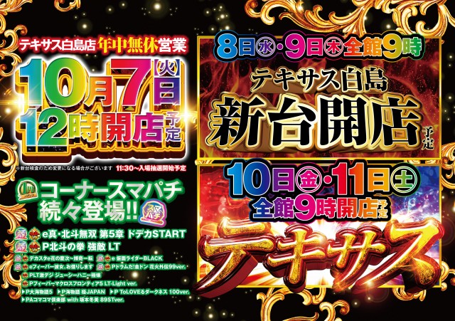 🌈白テキ新台開店🌈明日8日🐸🌈🐸全館9時オープン🐸🌈🐸