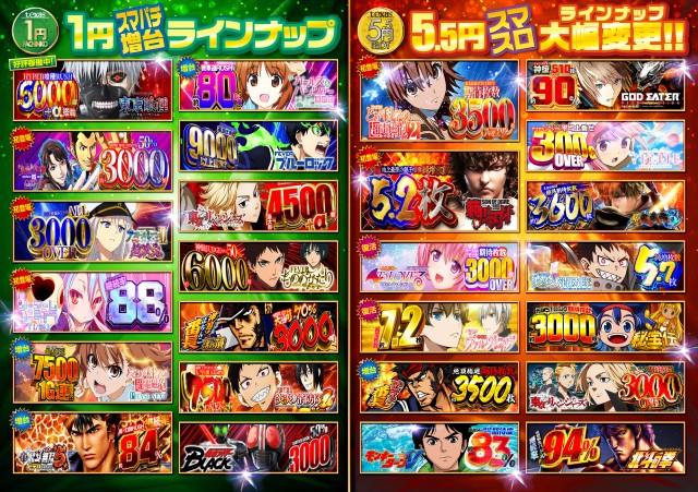 [4] 234台 [1] パチ 120台 [21.73] スロ186台 [5.5] スロ15台 |