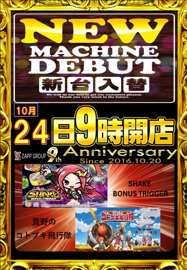 ZAPP段原店8周年♪ 4.26~4.28連日9時オープン!