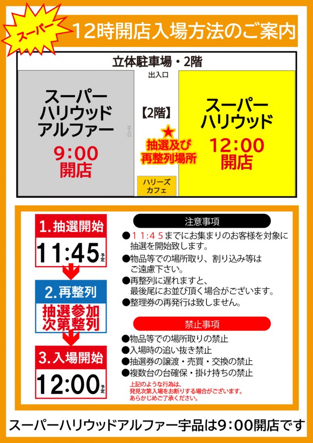朝8:45より店舗入り口にて入場抽選開始。8時50分より再整列。 |