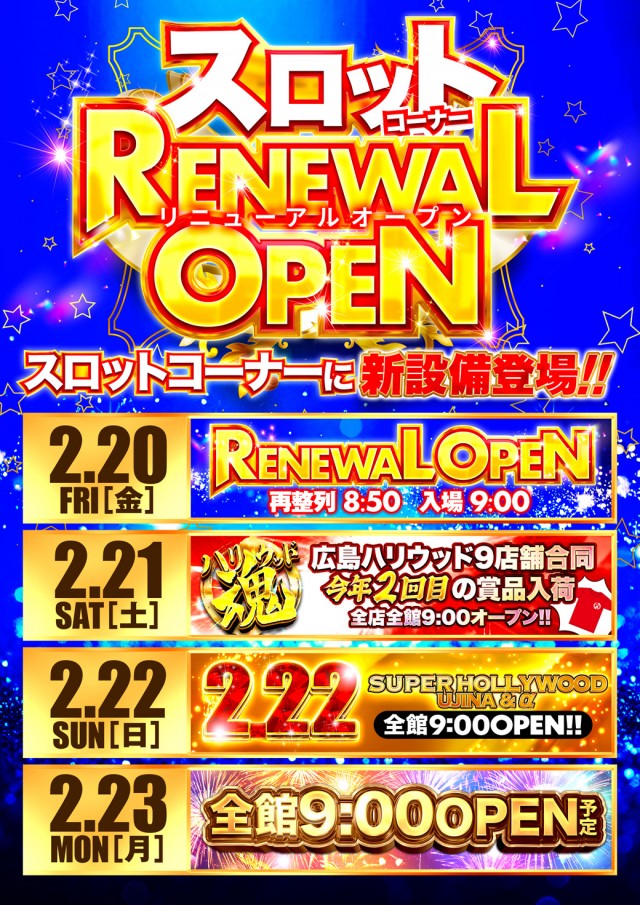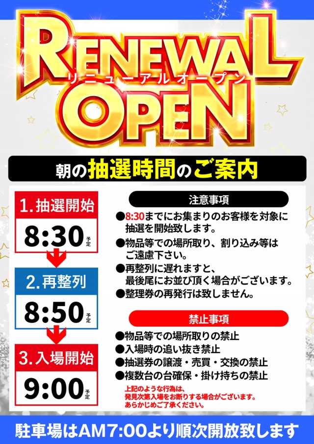 本日2月20日🔥リニューアルオープン🔥抽選時間は8時30分!