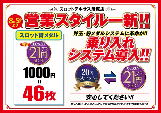 スロットテキサス段原店のお知らせ一覧