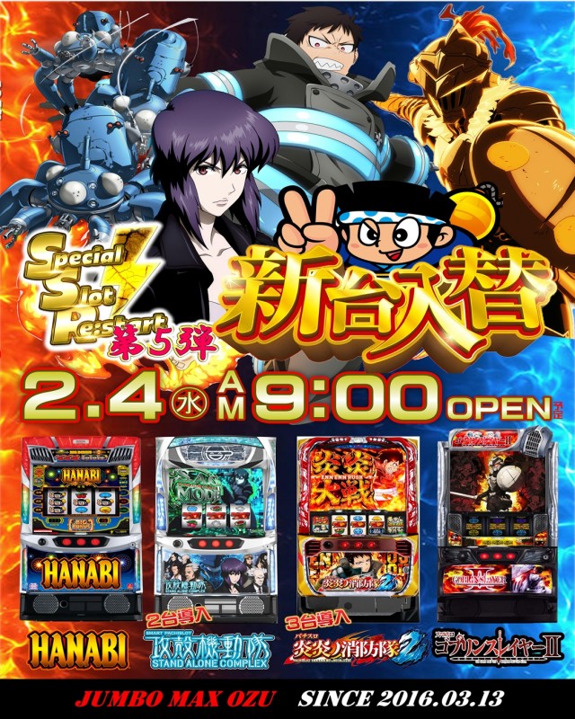 114玉パチ36台 2パチ36台 1.25パチ144台 46枚スロ168台 5スロ72台