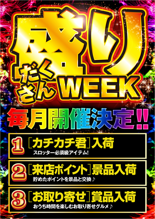 本日も盛りだくさんWEEK開催ッ! 8:20より抽選開始!