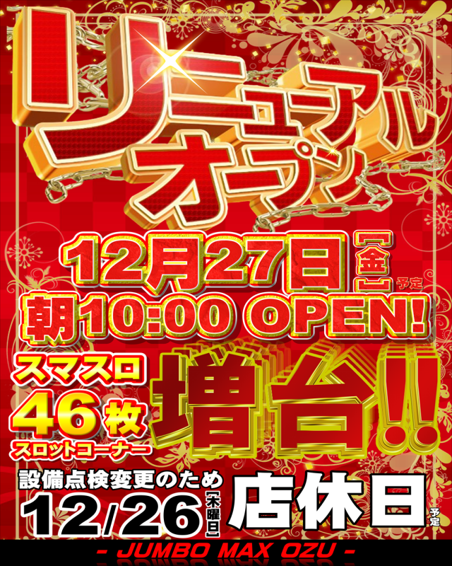 年末年始も休まず営業❗46枚スマスロ増台完了👍