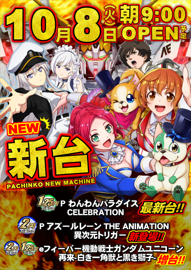 114玉パチ36台 2パチ36台 1.25パチ144台 46枚スロ168台 5スロ72台