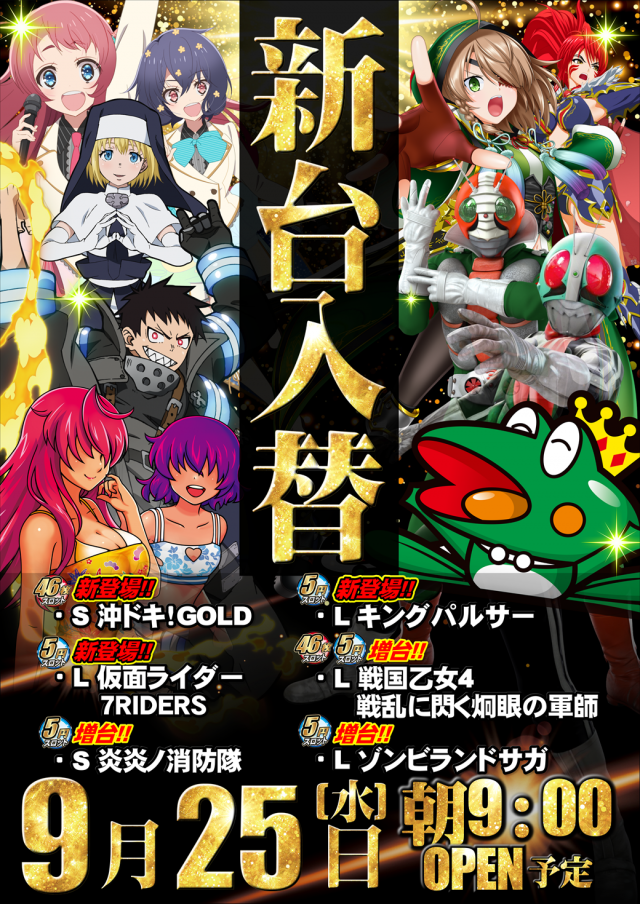 114玉パチ36台 2パチ36台 1.25パチ144台 46枚スロ168台 5スロ72台