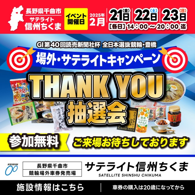 明日から豪華賞品🎁が当たる抽選会開催🎯千曲市のサテライトへ