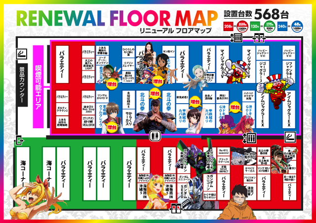 【1000円=250玉パチ:208台】【200=175玉パチ:120台】【1000円=46枚スロ:240台】 |