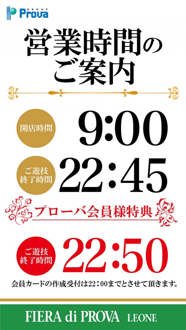 OPEN 9:00 ~ CLOSE 22:45(会員カードで22:50) |
