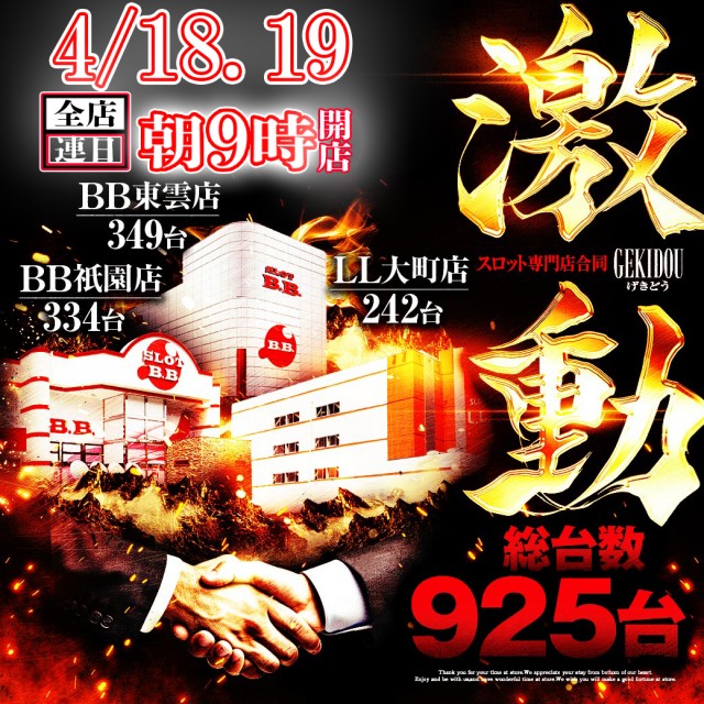 4/18.19 3店舗連日9時開店『激動』👊