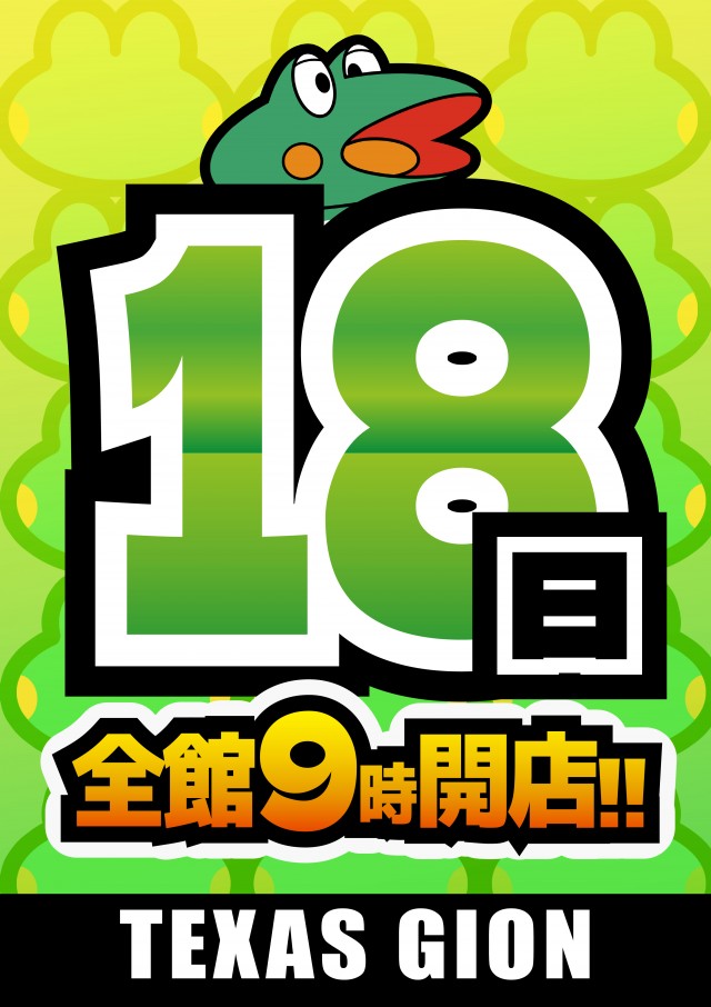 2025/10/1818日全館9時OPEN🐸おはようございます テキサス祇園店です♪  本日全館9時OPEN!!      入場抽選は777コンパスを使用しております! 8時50分までに駐輪場にお集まりください! 皆様のご来店を心より お待ちしております♪