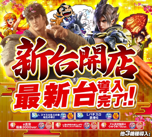 明日6日新台開店初日!!話題の最新機種を地域最大級導入!!