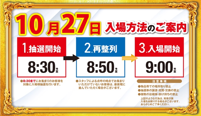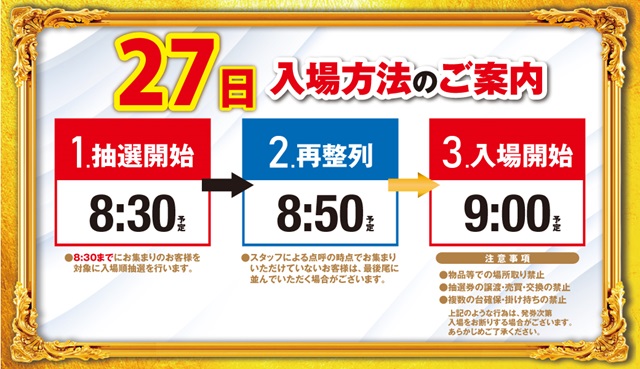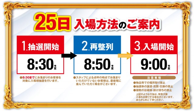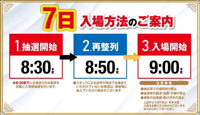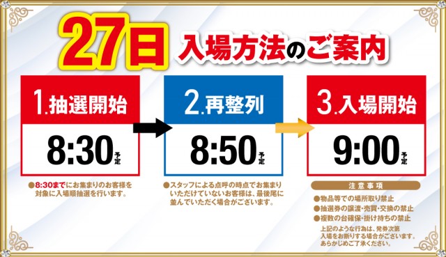 8:30より立体駐車場側にて入場抽選を行います。 |