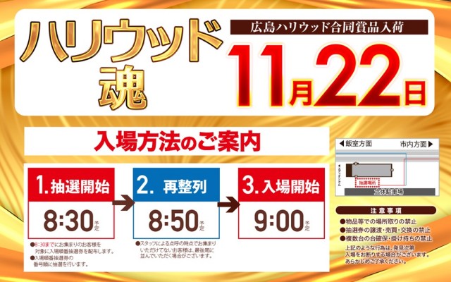 【HW魂】本日22日!広島ハリウッド一斉賞品入荷!!