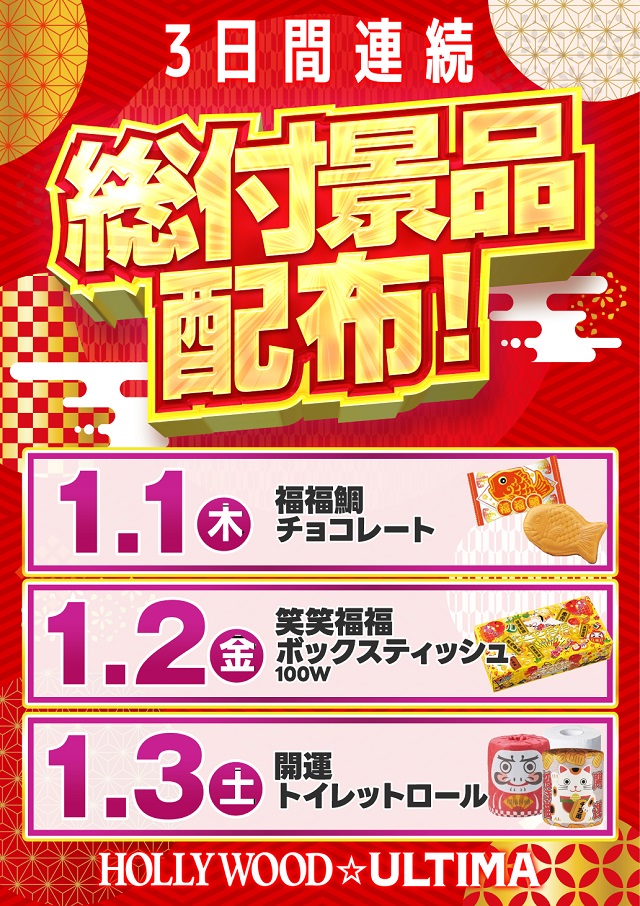 本日1月3日も朝9時OPEN!!総付景品配布!!