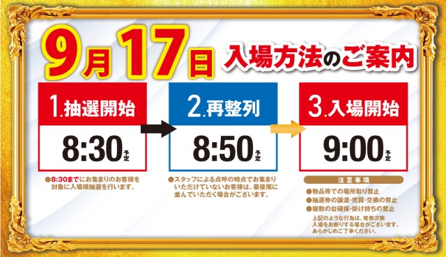 8:30より立体駐車場側にて入場抽選を行います。 |