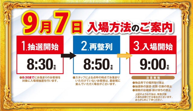 8:30より立体駐車場側にて入場抽選を行います。 |