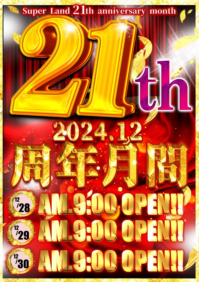 12月21日(土)周年月間全館9時スタート