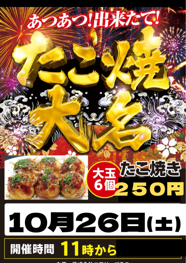 10月2⑥日(土)全館9時スタート!!