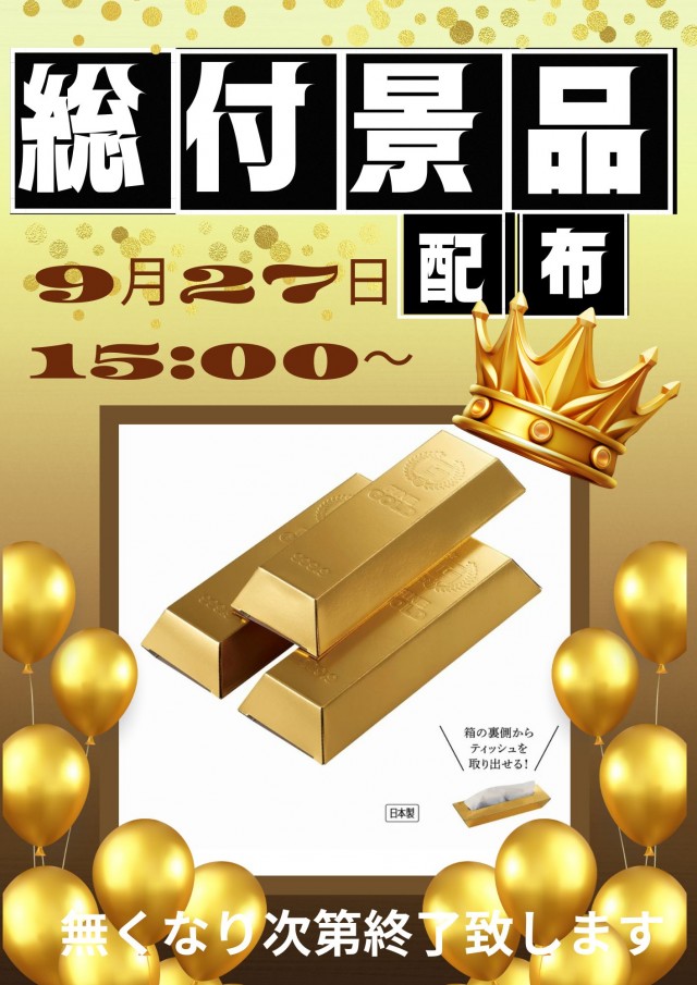 9月2⑥日(金)全館9時スタート!!