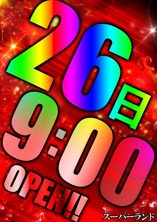 9月2⑥日(金)スーパーランド全館9時スタート