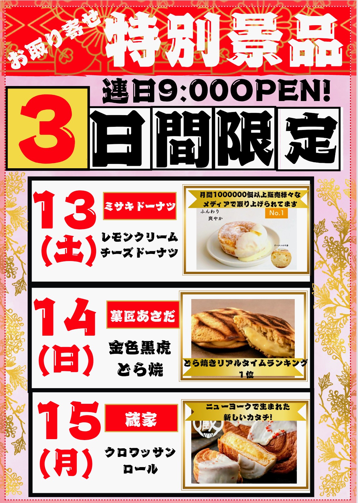 9月⑥日(土)全館9時スタート!!