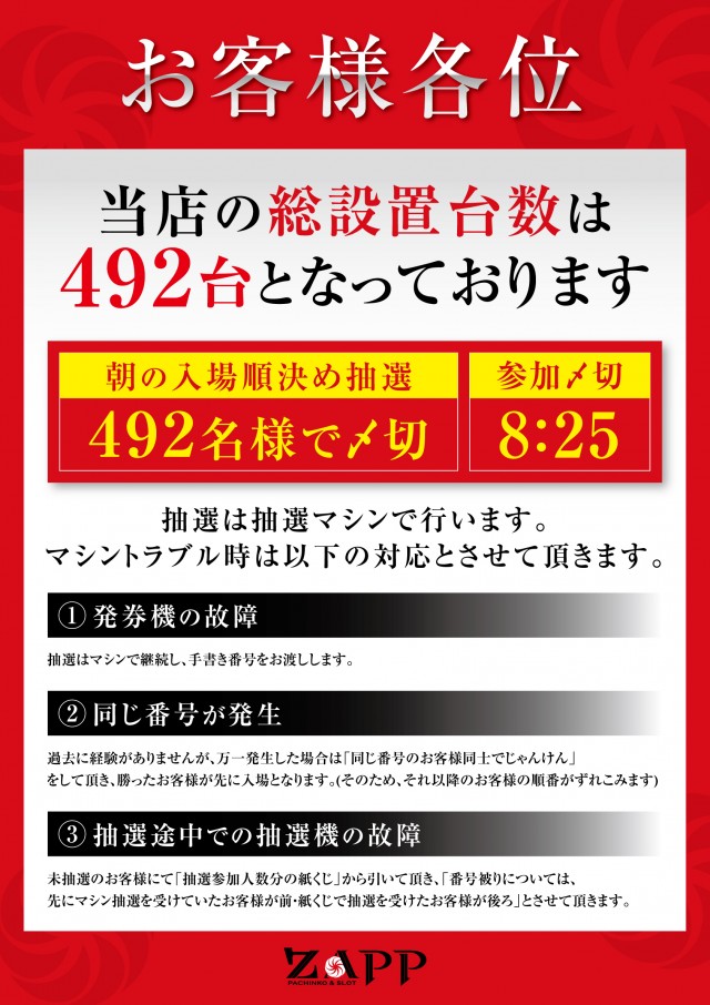 ★ZAPP瀬野川店★本日新台入替この後朝9:00OPEN!