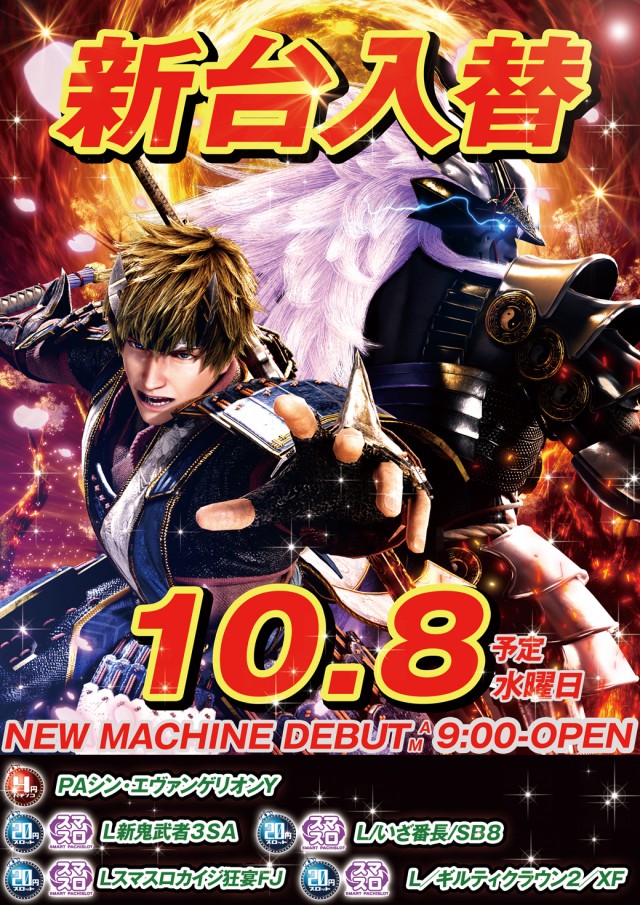 🌟10月8日水曜日 新台入替 9時オープン🌟