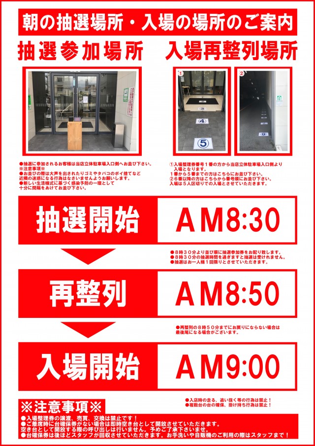 明日も全館9:00オープン😊!!抽選時間は8:30です!