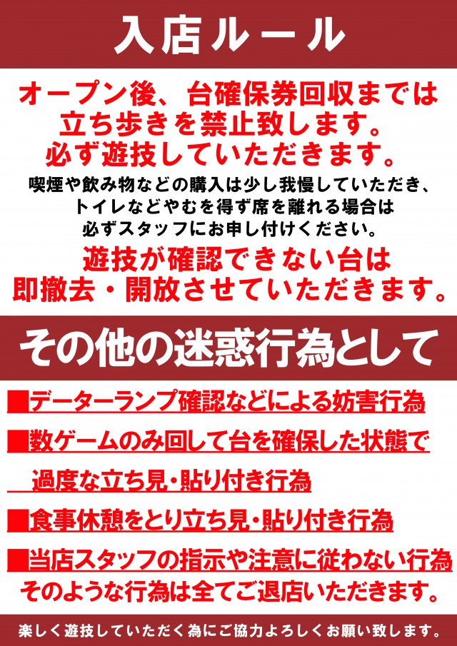 1000円/910玉パチンコ:120台 1000円/228玉パチンコ:120台 |