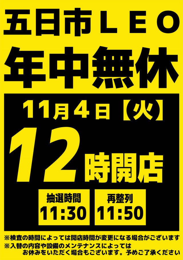 年中無休(新台入替前日のみ12時開店もしくはお休みをいただきます) |