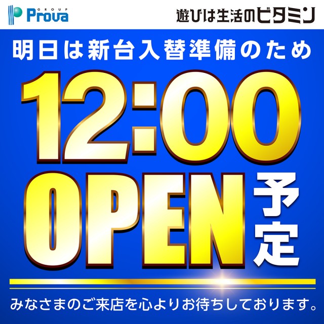 【 本日12:00 OPEN ⇒ 明日は大型新台入替 予定】