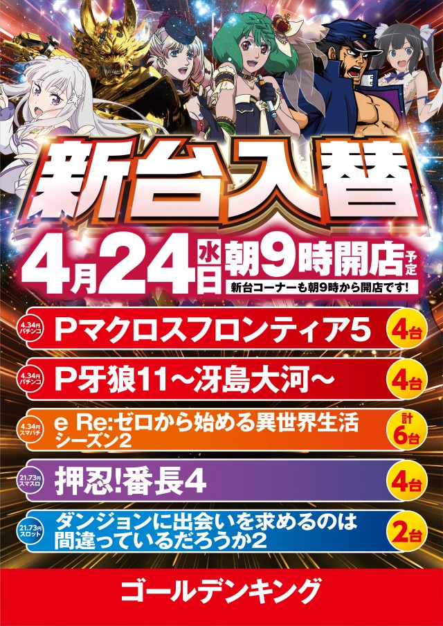 ゴールデンキング新台開店!