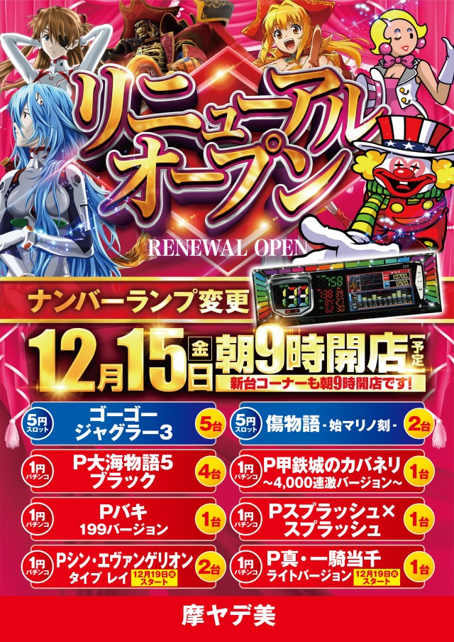 本日、新台開店!!皆様のご来店を心よりお待ちしております。