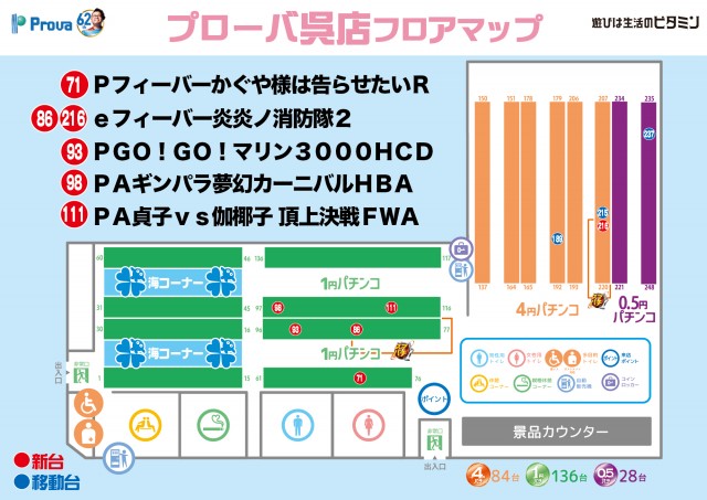 4パチ:84台 1パチ:136台 0.5パチ:28台 |