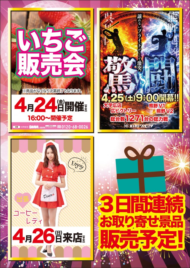 明日は、新台入替3日目!いちご交換会開催予定!!!