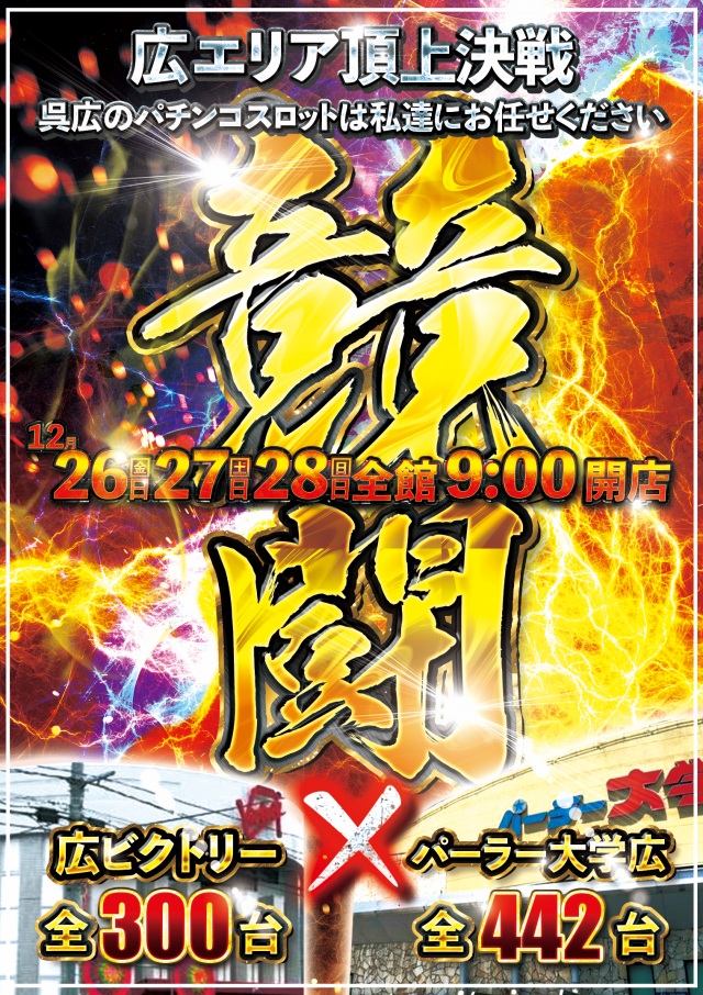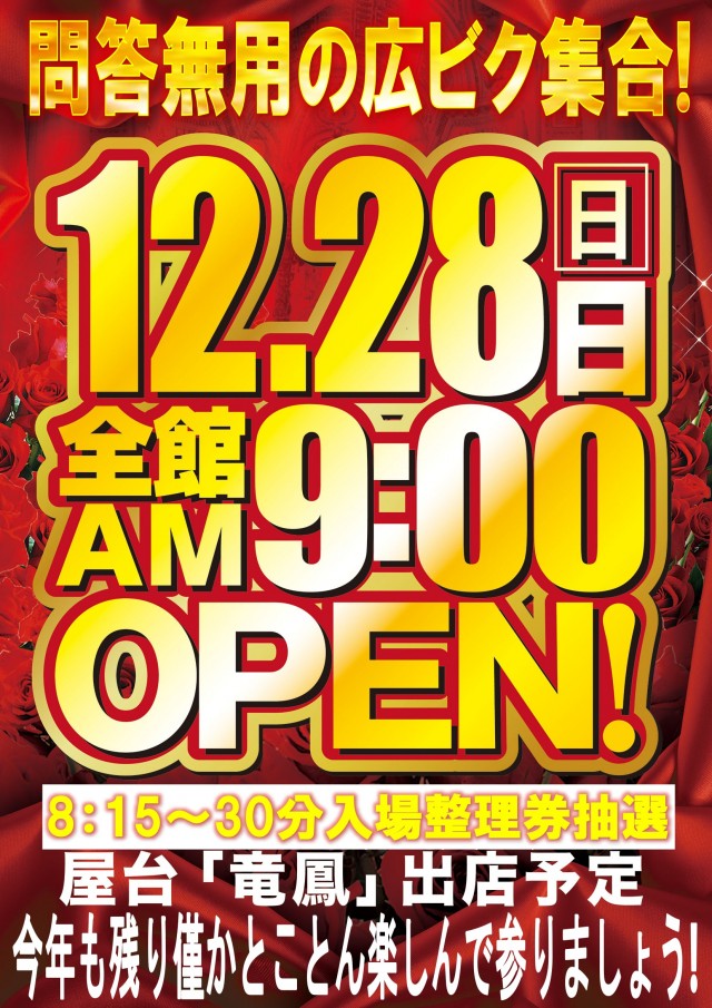 本日から激闘開始!これが栄光の光だ!全館9時オープン!!
