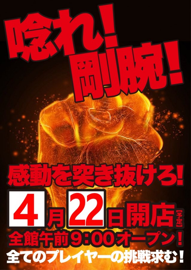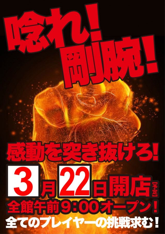 明日は、新台入替入替初日!日と日が重なる日唸れ!剛腕!!!