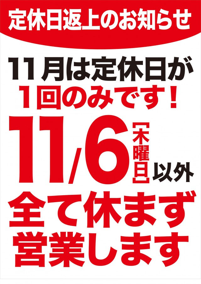 本日は、店休日です。
