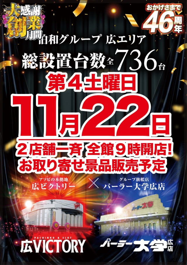 創業月間!明日「18(火)」は、迷わず広ビクトリー集合です!