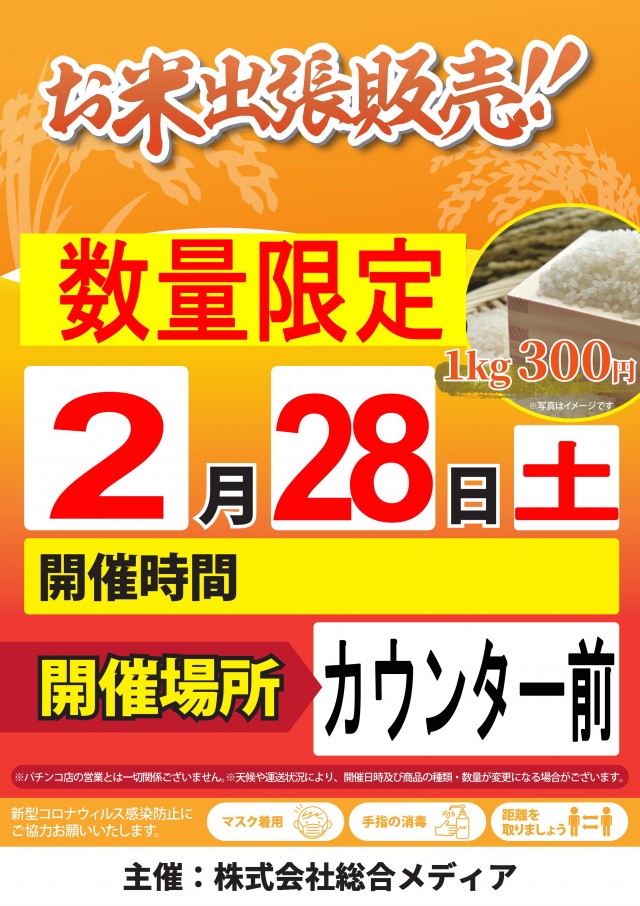 明日「28日」は、迷わず広ビク集合です!お米出張販売予定!