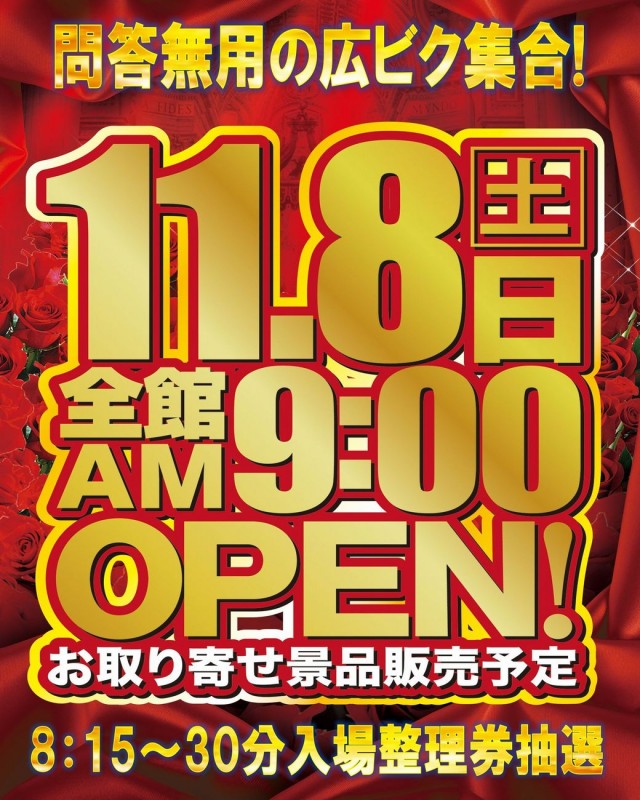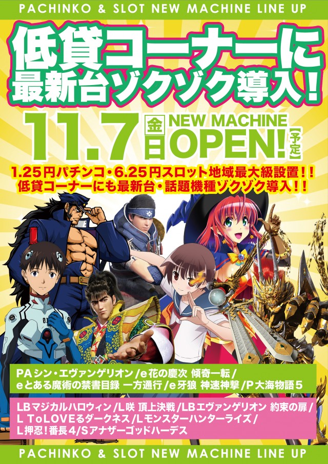 創業月間!本日は、話題機種続々導入の新台入替初日予定!!