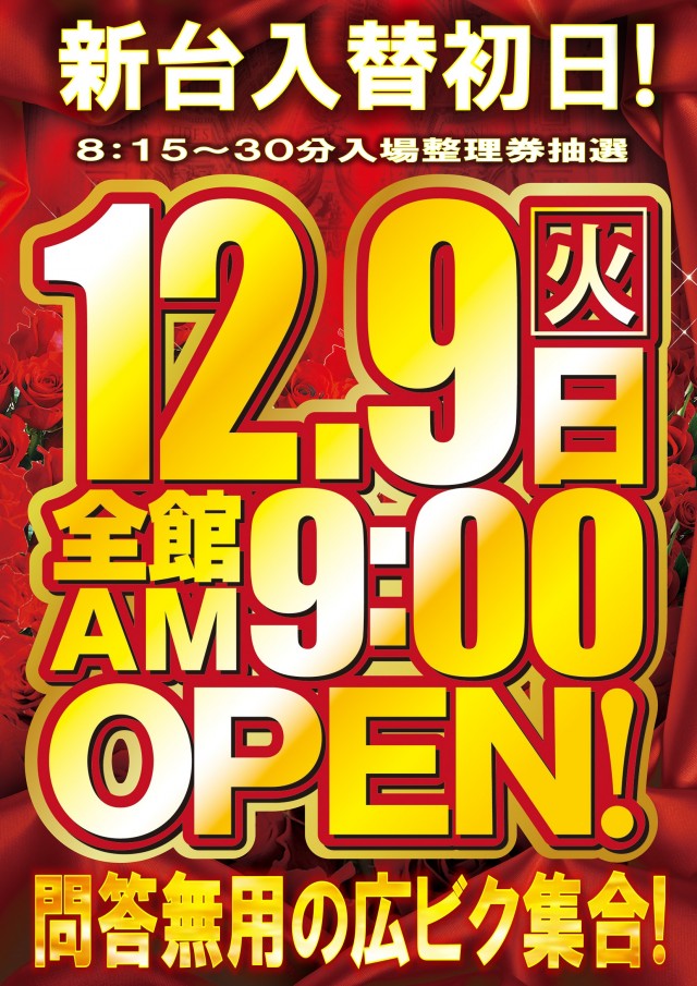 明日もワクワクぶっちぎり全館9時オープンお取り寄せ景品も販売