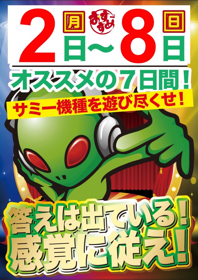明日から、サミー機種で遊び尽くせ!サミーおすすめ週間発動!